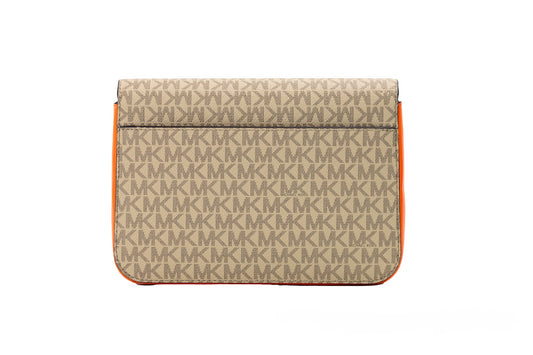 Michael Kors Reed Small Camel Signature PVC Flap Saddle Crossbody Bag