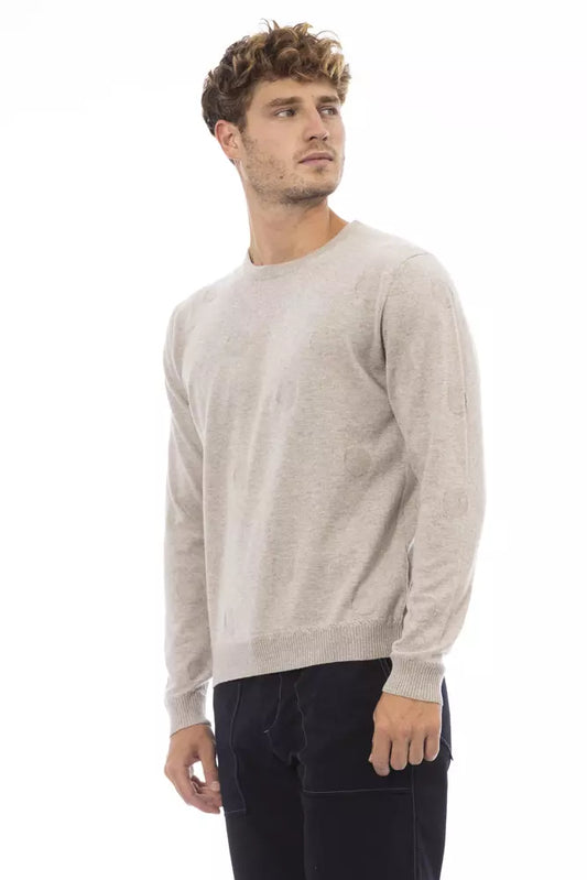 Alpha Studio Elegant Beige Crewneck Wool-Cashmere Sweater