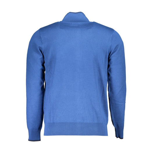 U.S. Grand Polo Elegant Half-Zip Blue Sweater with Embroidery Detail
