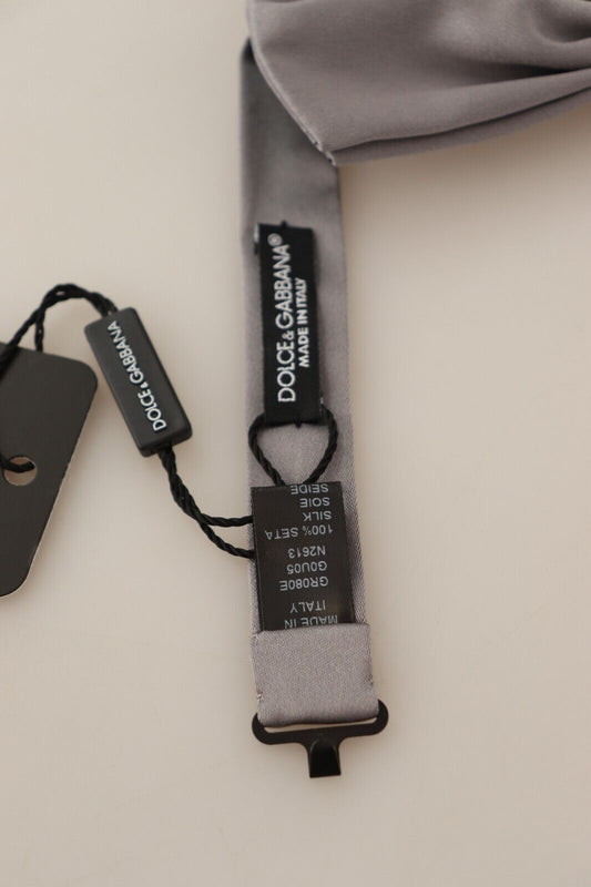Dolce & Gabbana Elegant Silver Silk Bow Tie for Sophisticated Evening