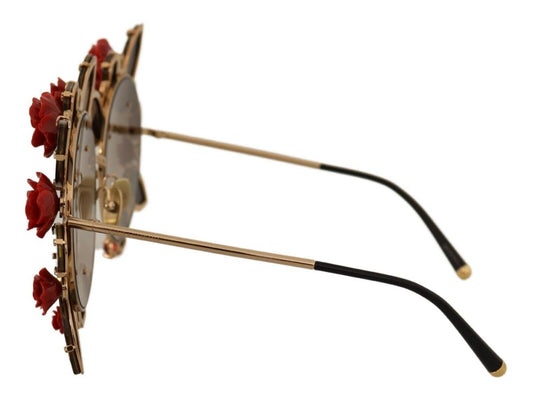 Dolce & Gabbana Elegant Round Metal Sunglasses with Rose Detail
