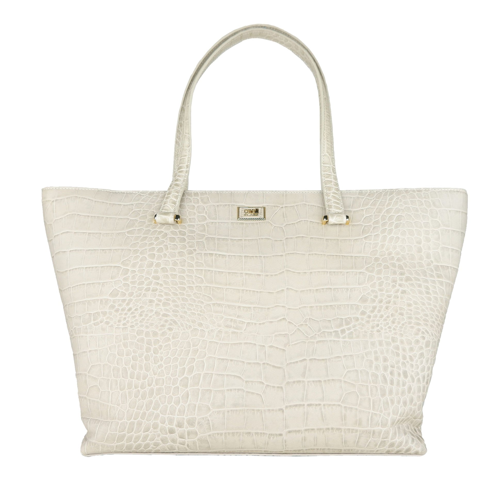 Cavalli Class Chic White Calfskin Leather Handbag