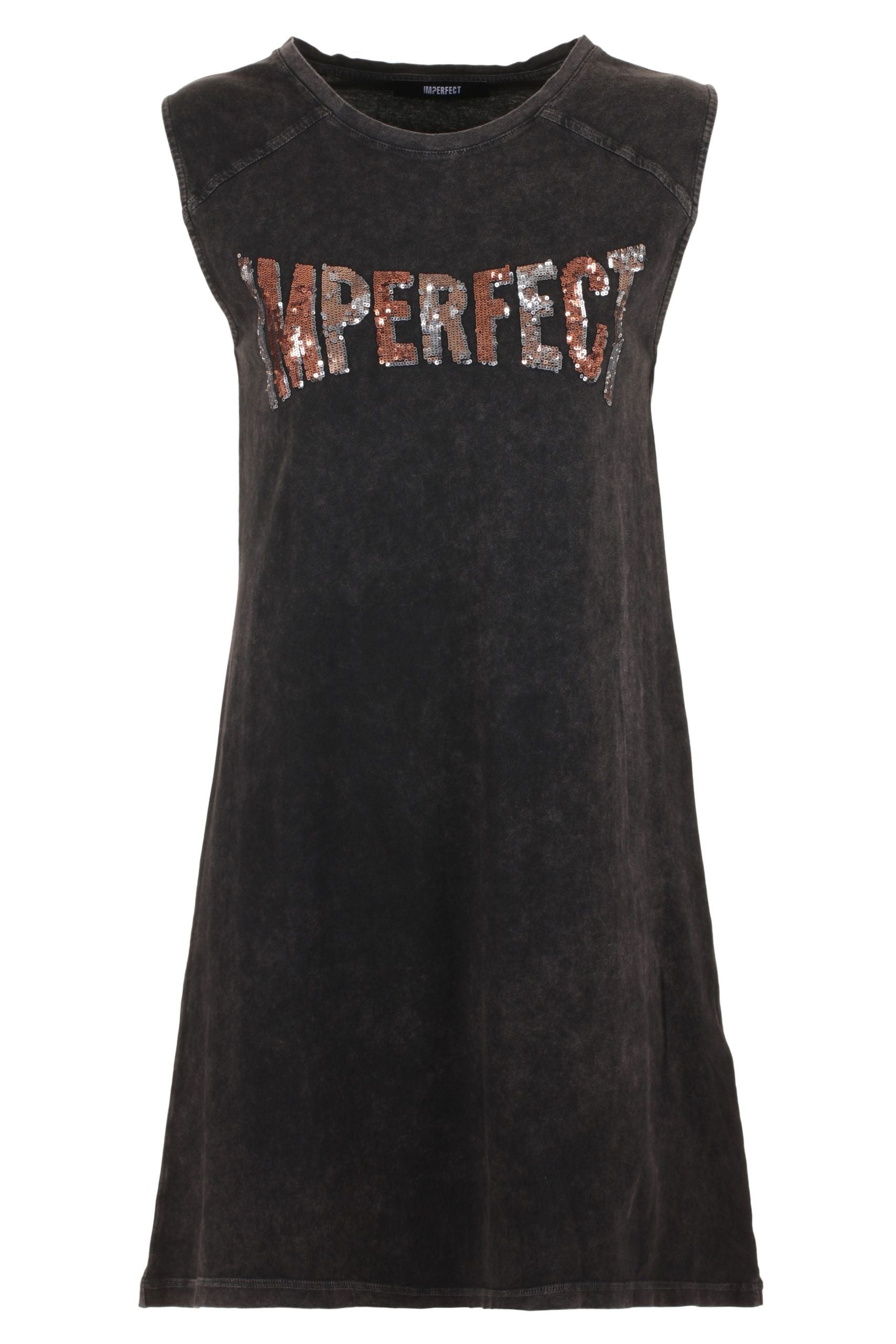 Imperfect Elegant Black Cotton Dress with Logo Detail