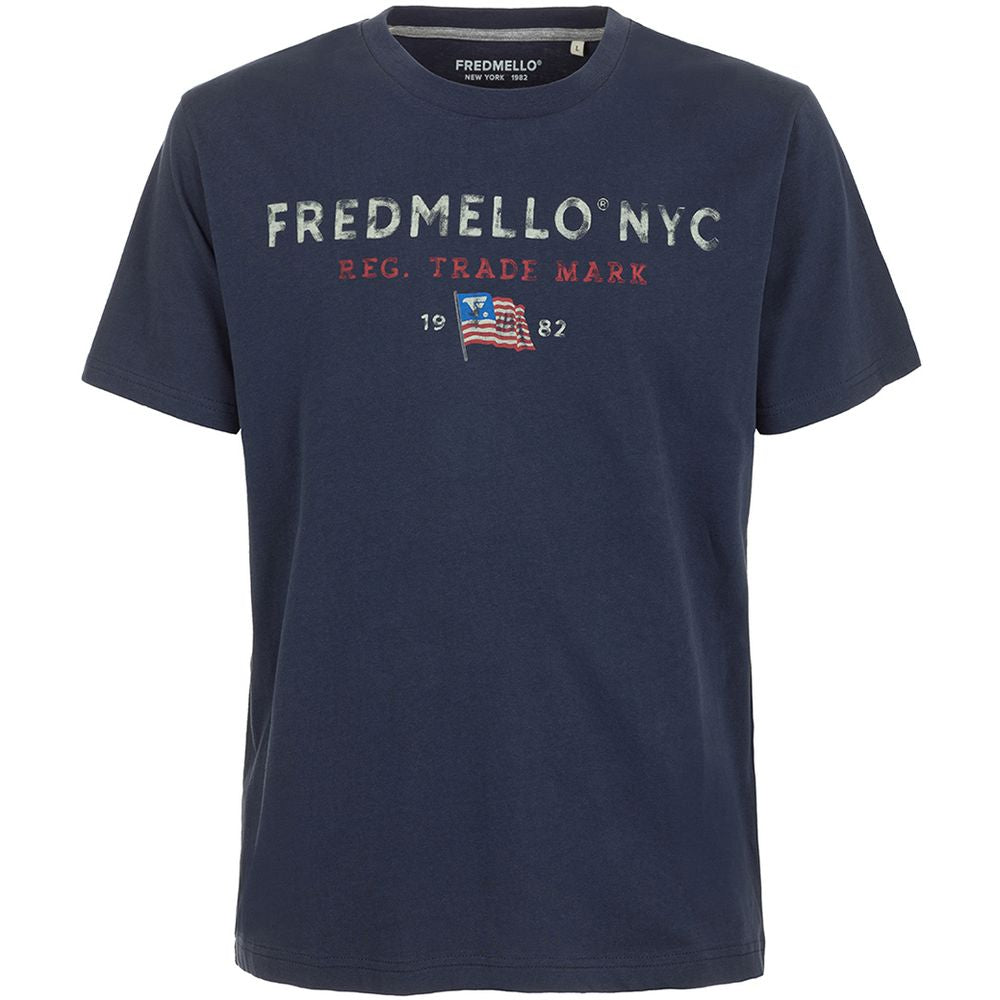 Fred Mello Sophisticated Blue Cotton Tee with Elegant Print