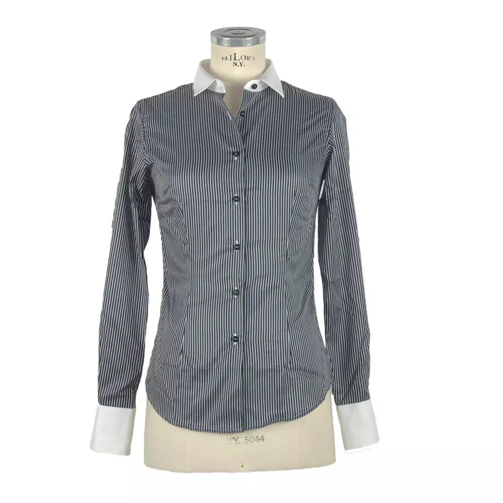 Made in Italy Chic Slim Fit Black Cotton Blouse